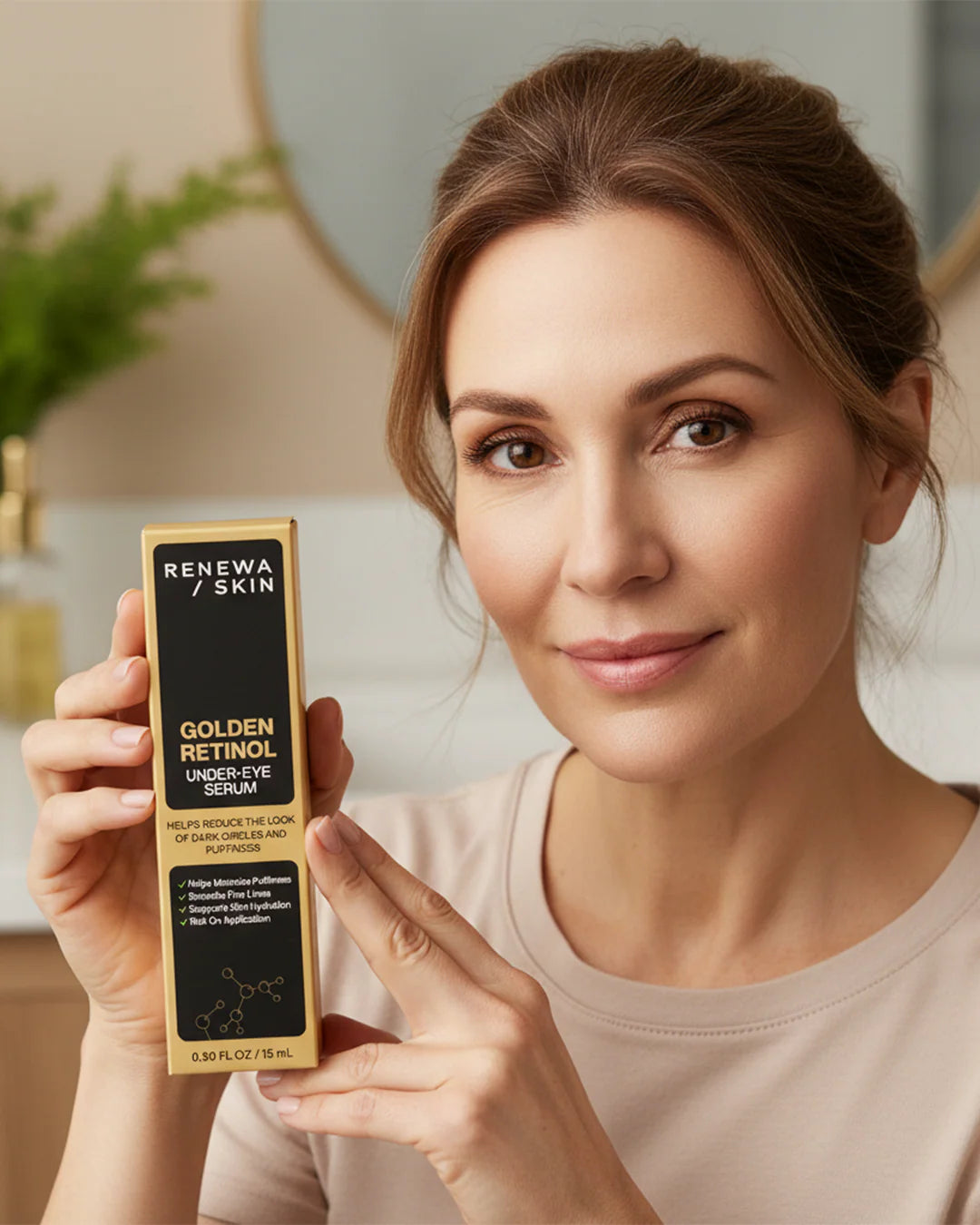 Retinol boosts collagen, smooths fine lines, fades dark circles, and helps reduce puffiness, making the under-eye area look firmer and more refreshed.