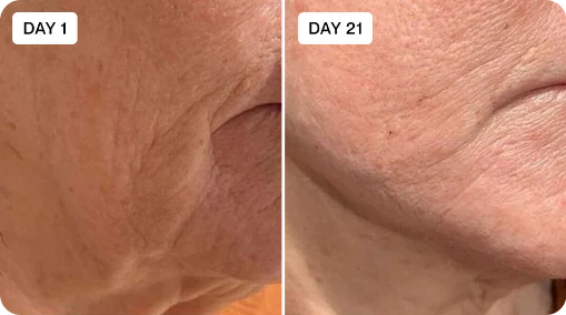 Most users feel smoother skin and see reduced puffiness in the first 7–10 days. Visible improvements in fine lines and brightness usually appear within 2–3 weeks of consistent use.